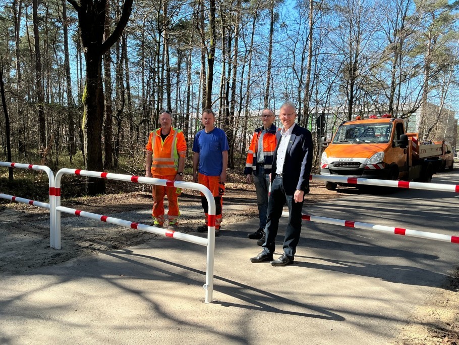 Bürgermeister Guido Heinisch überzeugte sich vor Ort über die Vorteile der neuen Wegesperren und dankte den Mitarbeitenden des Bauhofes für ihre gute Arbeit. „Ich möchte mich an dieser Stelle aber auch bei den Hatter Bürgerinnen und Bürgern bedanken, die die Verwaltung auf eine mögliche Verbesserung der Situation am Oldenburger Weg hingewiesen haben. Solche Hinweise sind sehr wertvoll für mein Team und mich. Ich freue mich, dass wir zügig eine gute Lösung finden konnten.“