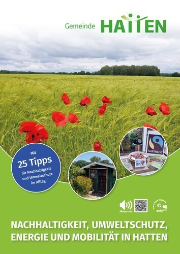Die Verwaltung freut sich, die erste Nachhaltigkeitsbroschüre der Gemeinde Hatten präsentieren zu können. Sie finden die Broschüre sowohl digital auf der Internetseite unter Nachhaltigkeitsbroschüre als auch in gedruckter Form im Rathausfoyer. Ein Hörbeispiel finden Sie ebenso auf unserer Internetseite.