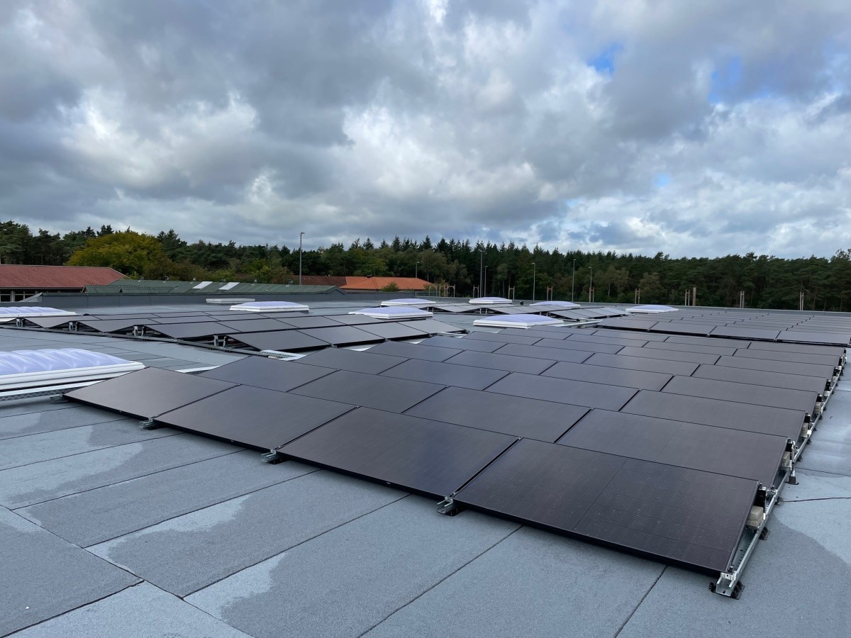 Bereits fertiggestellte Photovoltaikanlagen sind u. a. auf der Bestandssporthalle an der Waldschule mit ca. 56,32 kWp (siehe Foto) und auf dem neuen Garagengebäude der Feuerwehr Dingstede mit einer Leistung von 8,8 kWp zu verzeichnen.