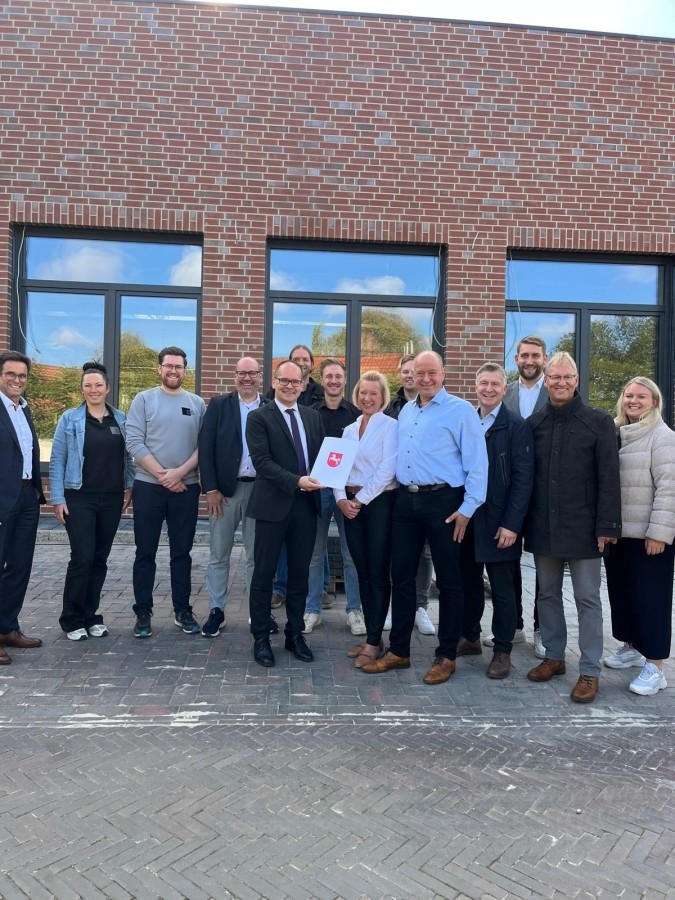 Am Mittwoch, dem 01.10.2025 wurde Familie Schnitker, Inhaber des Hotels und Restaurants „Zum Deutschen Hause“ in Kirchhatten, der Fördermittelbescheid für die Renovierung des großen Saales überreicht. Die Überreichung wurde von dem Minister für Wirtschaft, Verkehr und Bauen Herrn Tonne persönlich vorgenommen. Anwesend waren zudem Bürgermeister Guido Heinisch, Landrat Dr. Christian Pundt, Landtagsabgeordneter Thore Güldner, ein Vertreter der NBank und viele weitere am Umbau maßgeblich beteiligte Personen.